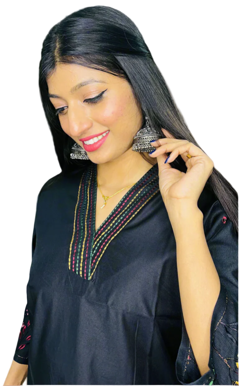This Minimal Black Embroidery Kurti in the V Neck Edition offers a refined blend of simplicity and detailed craftsmanship. The delicate black embroidery enhances the minimalist design, creating an elegant silhouette that works seamlessly for both casual and formal occasions. Its V neckline provides a flattering shape, adding subtle sophistication to your wardrobe essentials. Crafted for comfort and style, this kurti is a versatile piece that elevates understated elegance with expert tailoring.