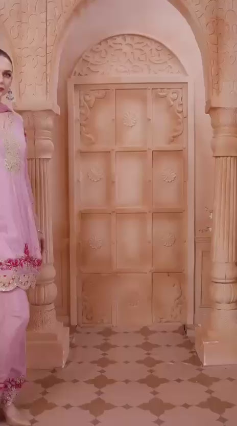 Blush Royale Premium Embellished Kurta, Palazzo & Dupatta Set